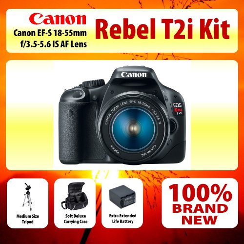 !1: Now is the time Canon EOS Rebel T2i Digital SLR Camera Kit with EF-S 18-55mm f/3.5-5.6 IS Lens Kit + Medium Size Tripod + Soft Deluxe Carrying Case + Extra Extended Life Battery Order Today!